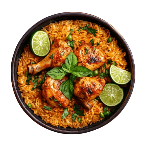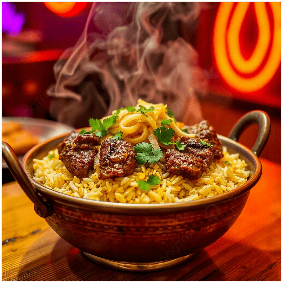 Fragrant basmati rice layered with spiced meat and herbs for a royal Indian feast.